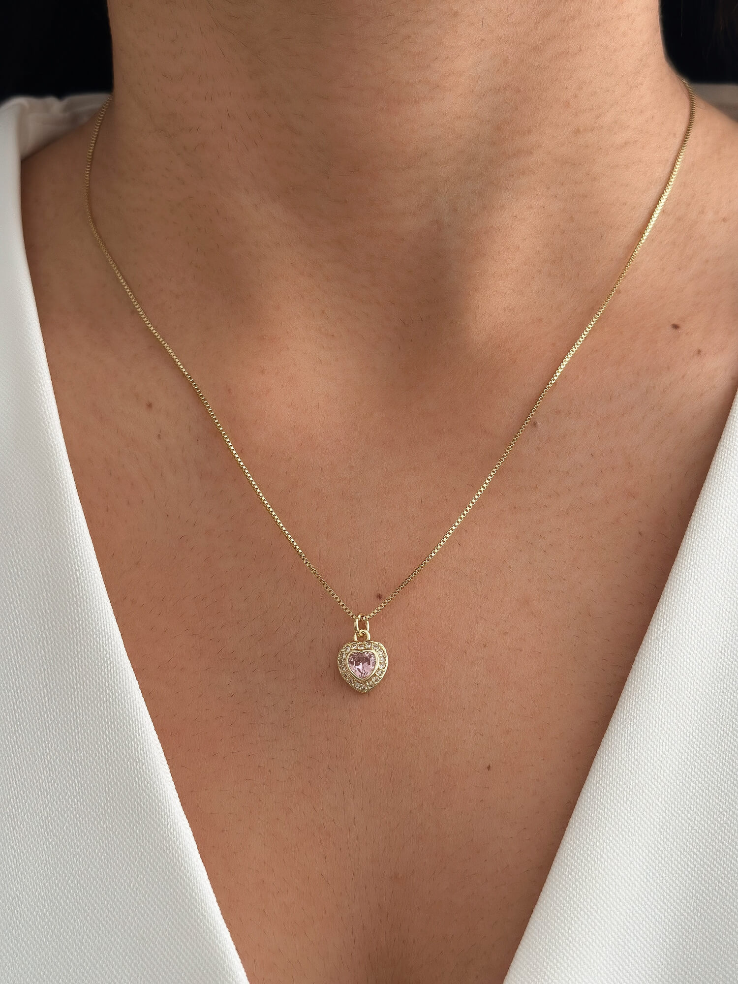 Cadena con dije de corazón tono rosa